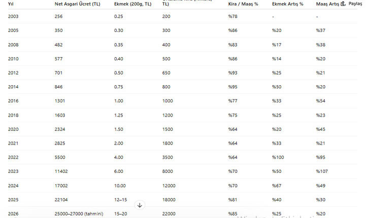 👉 Kira artışı maaş artışına çok yakın hatta bazı dönemlerde daha hızlı