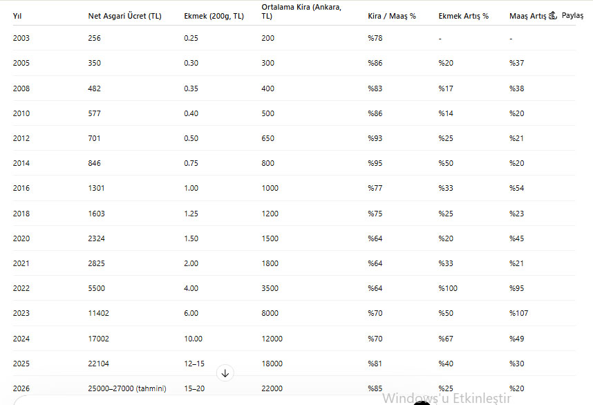 2003–2026 Türkiye (Ankara Bazlı) Ekonomik Karşılaştırma