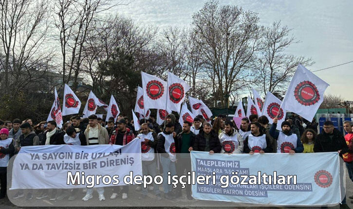 Migros depo işçileri, yüzde 28–50 civarında ücret zammı, iş kolu değiştirilmeden kadrolu istihdam, banka promosyonlarının tam ödenmesi ve vergi yükünün işveren tarafından karşılanması gibi taleplerle 23 Ocak’tan bu yana eylem halinde.