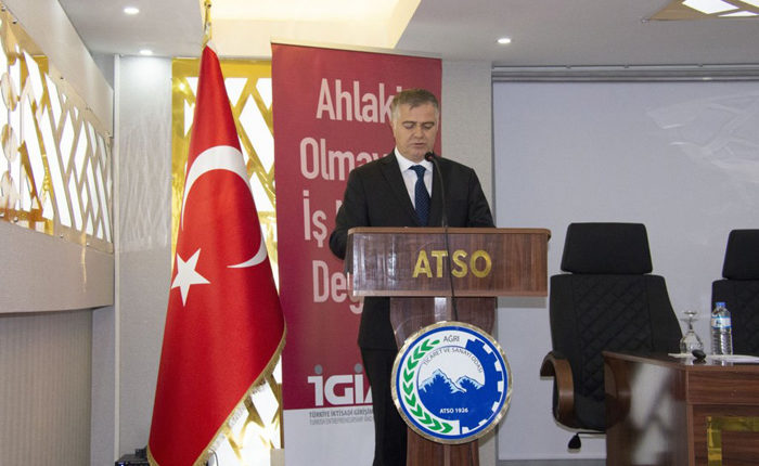 Türkiye İktisadi ve İş Ahlakı Derneği (İGİAD) ahlaklı girişimciliğin teşviki ve iş ahlakının yaygınlaşması amacıyla Ağrı’da Ticaret ve Sanayi Odası (ATSO) işbirliğiyle “İş Ahlakının Yaygınlaşmasında İş Dünyası, Üniversiteler ve Sivil Toplumun Rolü” panelini düzenledi.
