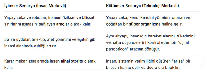 Teknolojiyi sadece yapay zekanın hizmetkarı olarak görmek dar bir bakış açısı olabilir. Ancak mevcut eğilimler, okurumuzun öngörüsünün tamamen çılgınca olmadığını gösteriyor. İşte olası iki senaryo: