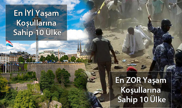 Yaşam koşulu en iyi olan ilk on ülke ve en kötü ülke.
