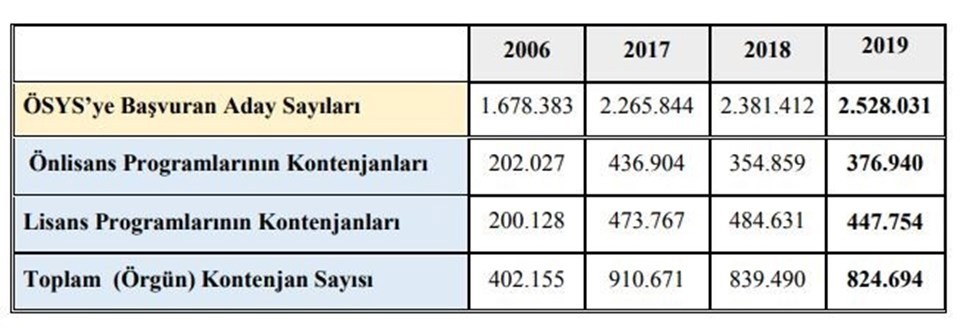 ÖSYS’ye başvuran aday sayılarında yıllar itibariyle artış yaşandı. ÖSYS’ye başvuran aday sayısı 2006 yılında 1.678.383 iken, 2017 yılında bu sayı 2.265.844’e, 2018 yılında 2.381.412’ye, 2019 yılında ise 2.528.031’e ulaştı.
